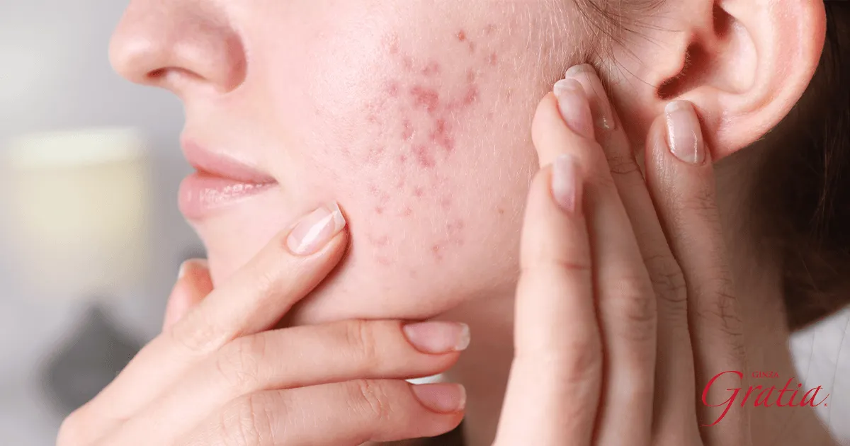 - 顔全体にニキビが出ている